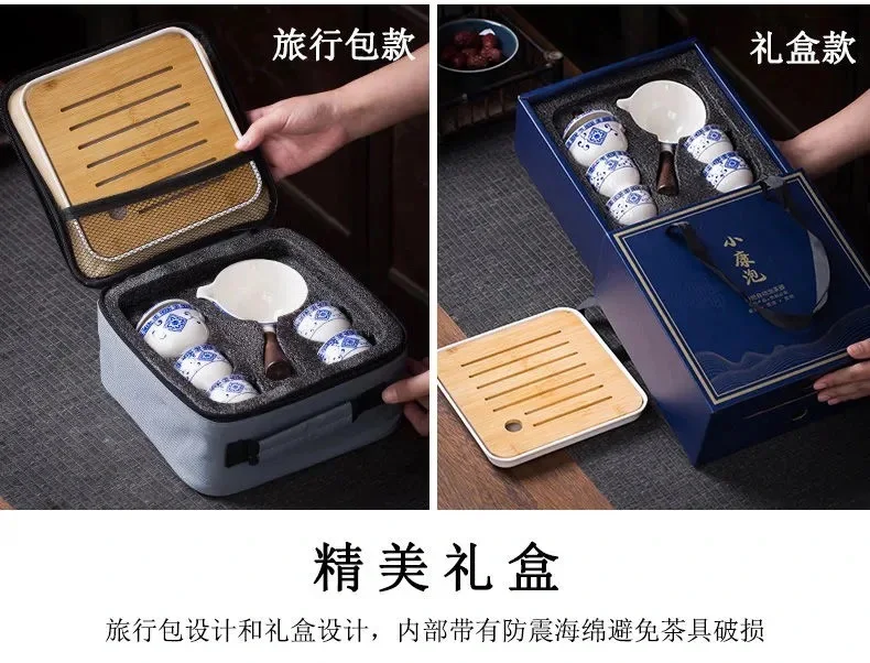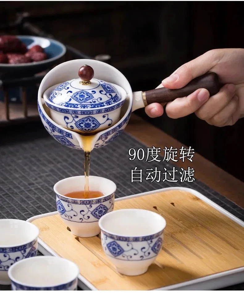360° Rotation Porcelain Gongfu Tea Set – Elegant Ceramic Infuser Cup with Travel Case