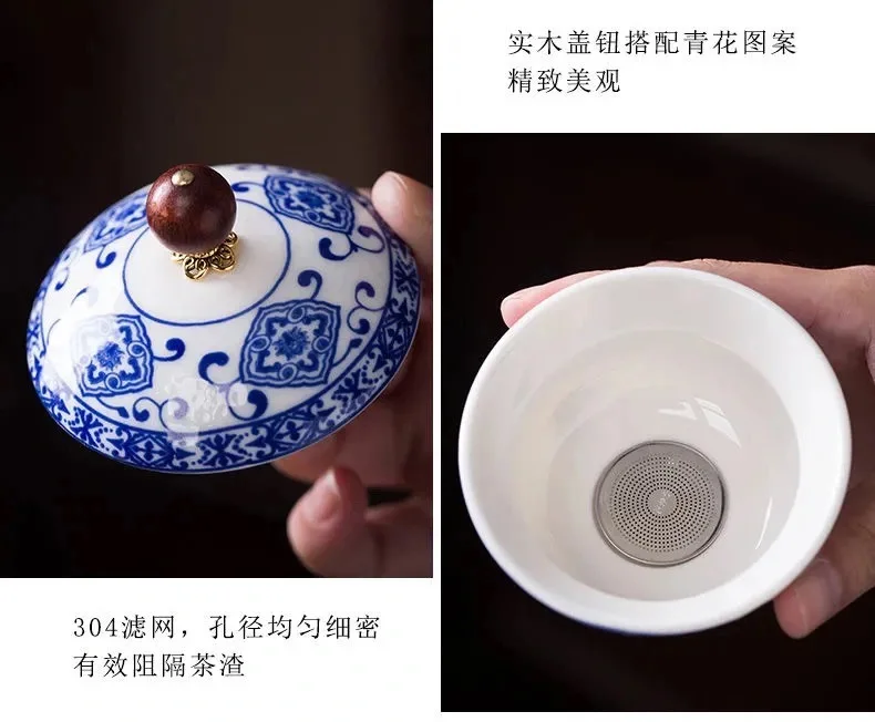 Crafted from high-quality porcelain, this exquisite set combines the beauty of Chinese artistry with the convenience of modern design.
